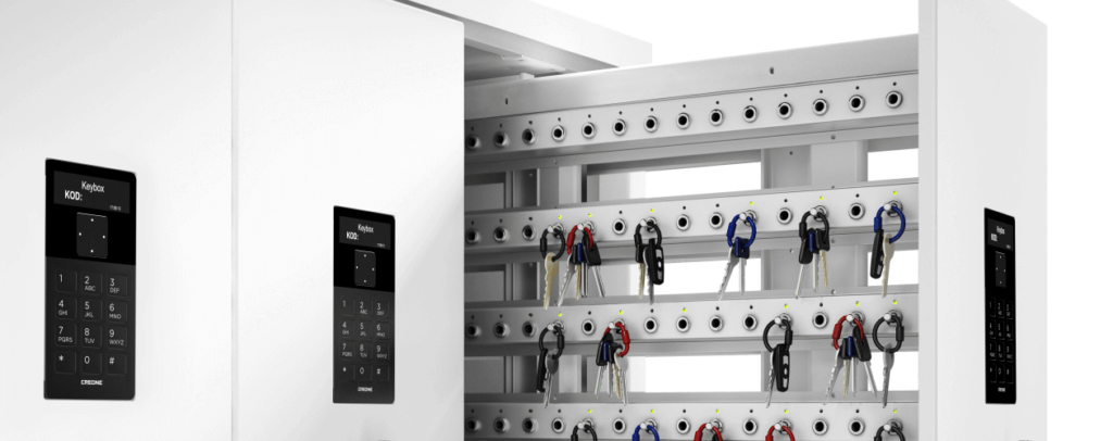 Intelligente Schlüsselschränke in variabler Größe: sie können einige wenigeSchlüssel oder mehrere tausende umfassen. Wenn der Bedarf wächst, können Sie problemlos weitere Schlüsselleisten und -plätze in Ihrem Schrank oder mehrere Schränke im gleichen System ergänzen.
